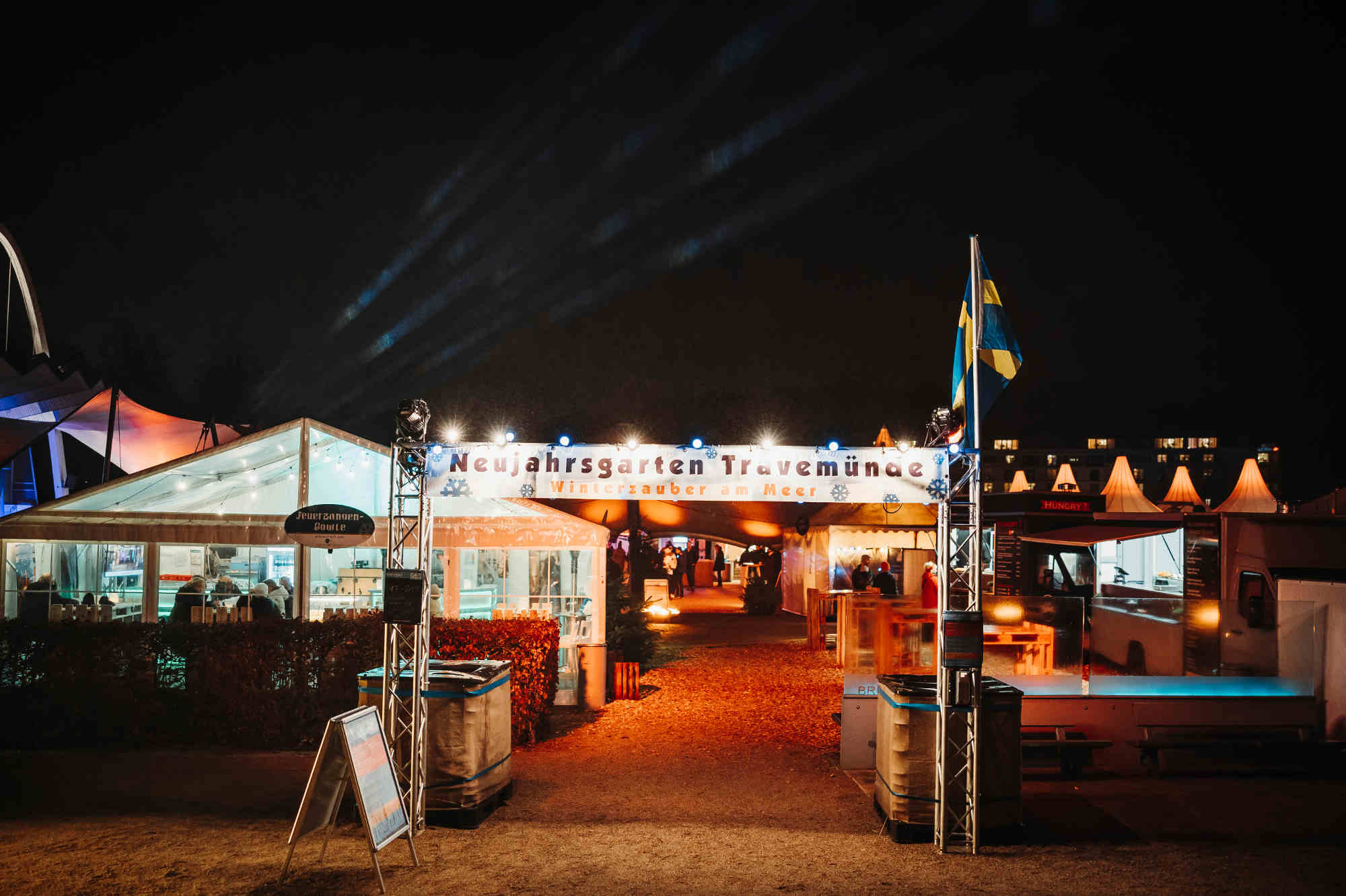 Der „Neujahrsgarten - Winterzauber am Meer“ lädt zum Einkehren, Aufwärmen und Bummeln in eine Winterwelt im Brügmanngarten ein. Unter dem großen Zeltdach an der Strandpromenade mit freiem Blick auf die eisige Ostsee erwarten dich behagliches Feuer, leckerer Glühwein und wärmende Jazzklänge. In den angrenzenden Zelten gibt es winterliche Kulinarik und einen Jahrmarktbereich für Kinder. Ein Höhepunkt für viele ist die Silvesternacht unter freiem Sternenhimmel und Meeresrauschengarantie und mit großer Silvesterparty samt DJ.