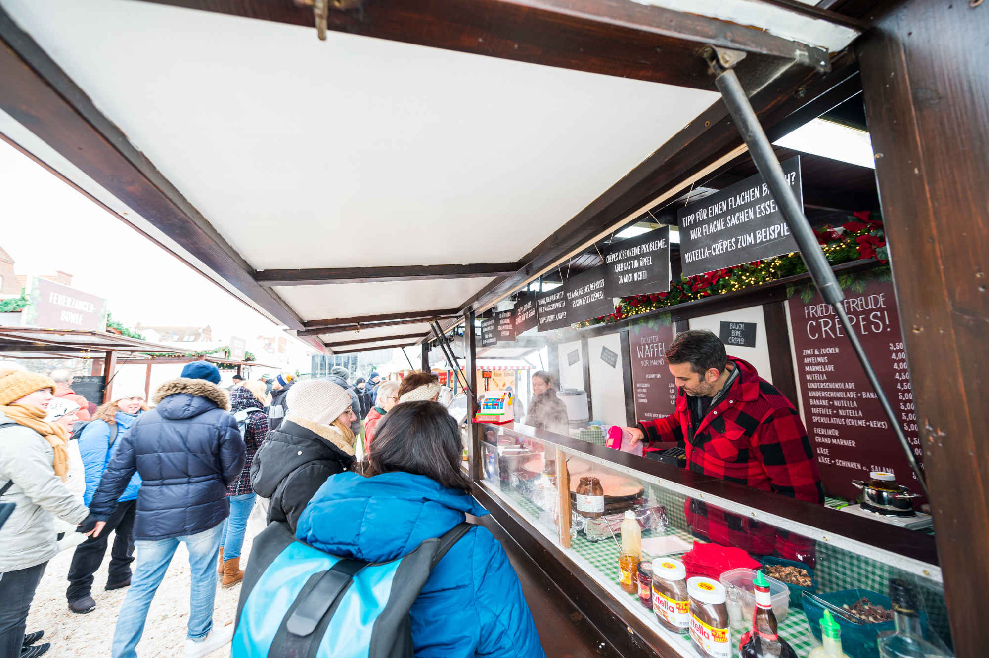 Ein Highlight für kleine Besucher: Der Weihnachtsmann und sein Engel kommen persönlich vorbei und haben einen Sack voller Süßigkeiten im Gepäck. Weihnachtliche Musik trägt zu einer wunderbaren Atmosphäre vor einmaliger Kulisse bei!