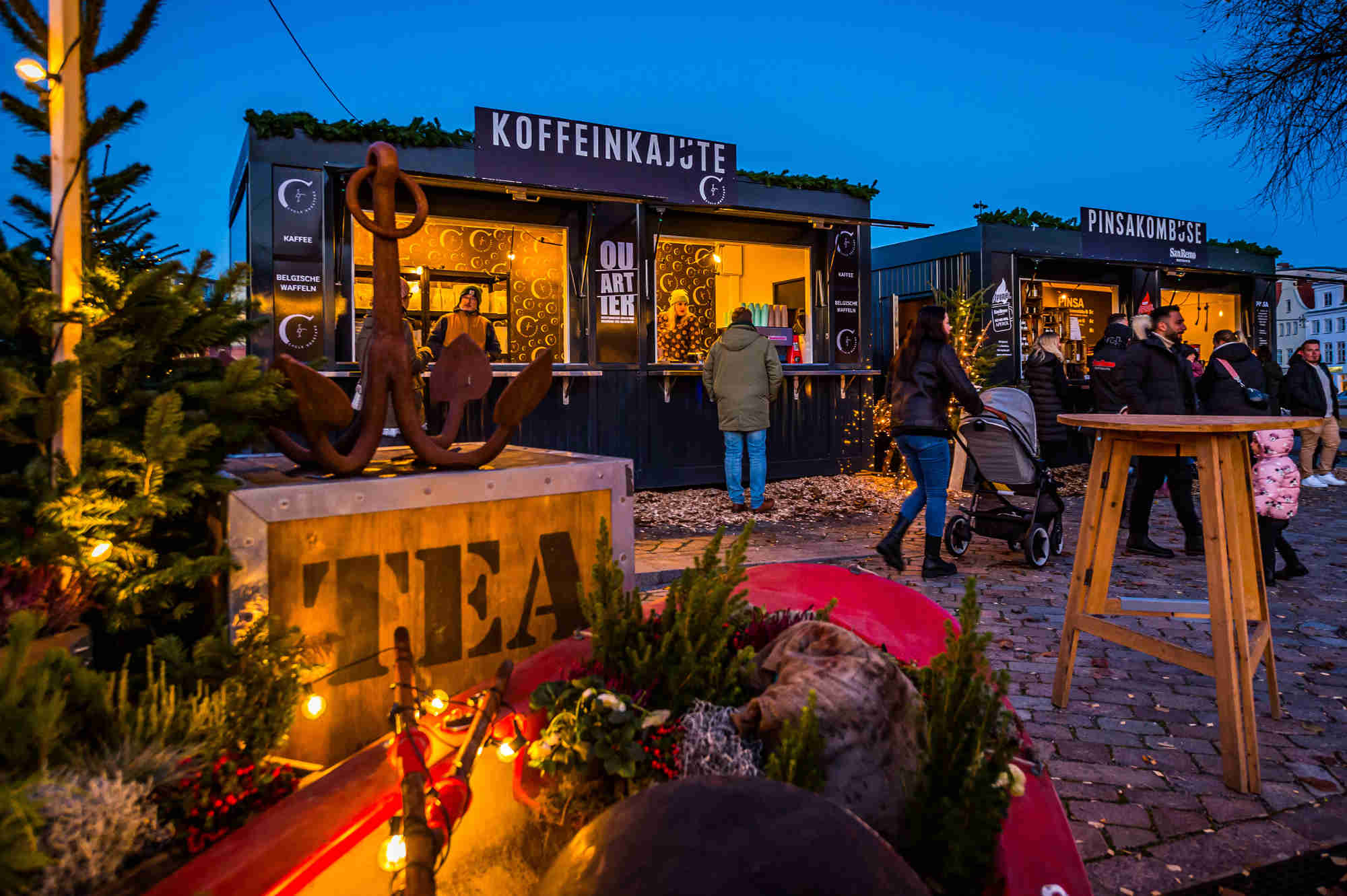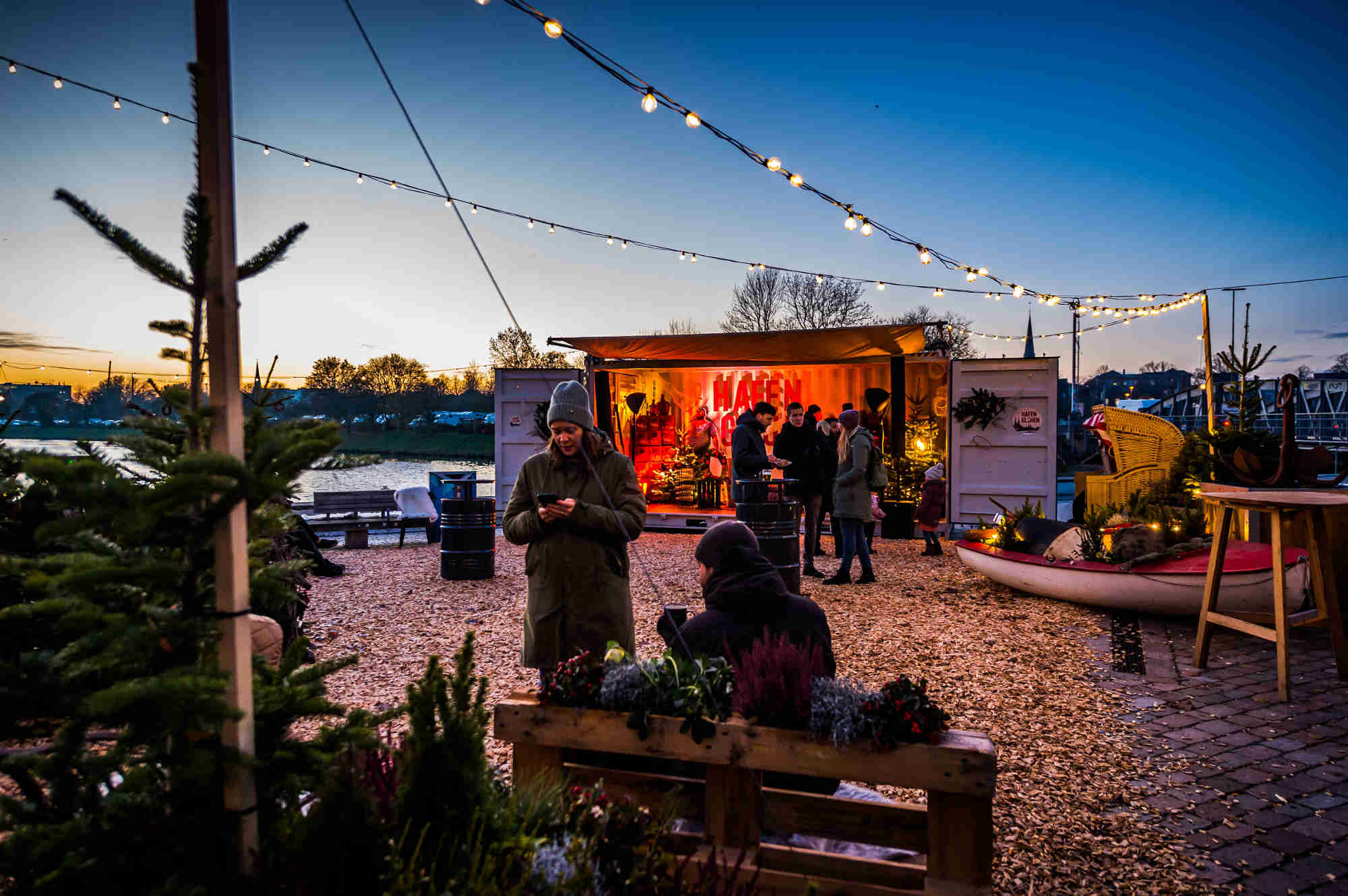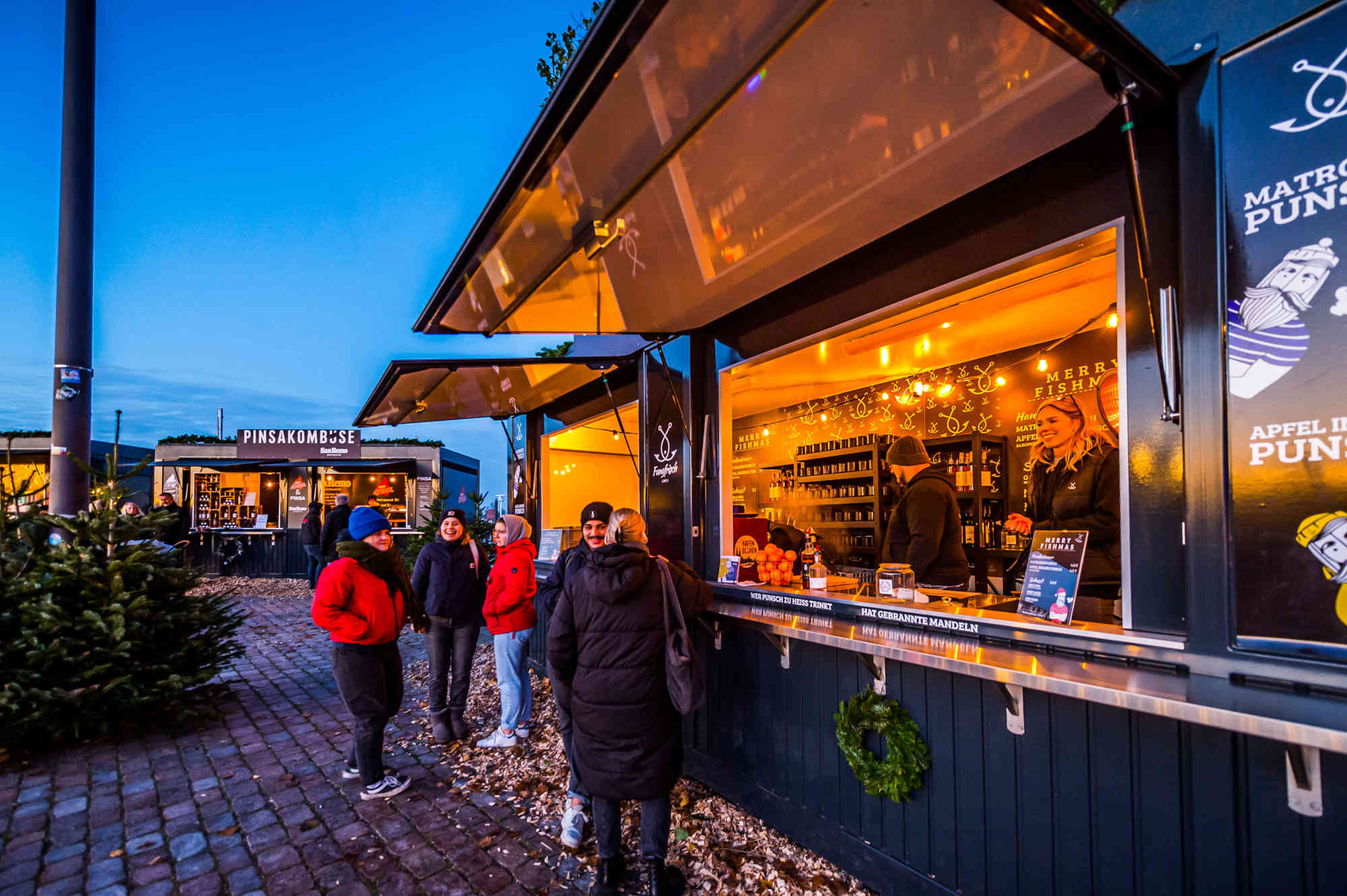 Nicht nur im Sommer ein absoluter Lieblingsplatz: Auch in diesem Jahr findet der rustikale Weihnachtsmarkt am Drehbrückenplatz statt und lädt mit industriellem Hafenflair ans Wasser ein. Neben den weihnachtlichen Klassikern wie Glühwein und Gebäck locken herzhafte und deftige Snacks die Fischliebhaber:innen an die Hafenkante. Ausgewählte Produkte lokaler Anbieter:innen sowie ein punktuelles Kulturprogramm runden diesen alternativen Markt ab.