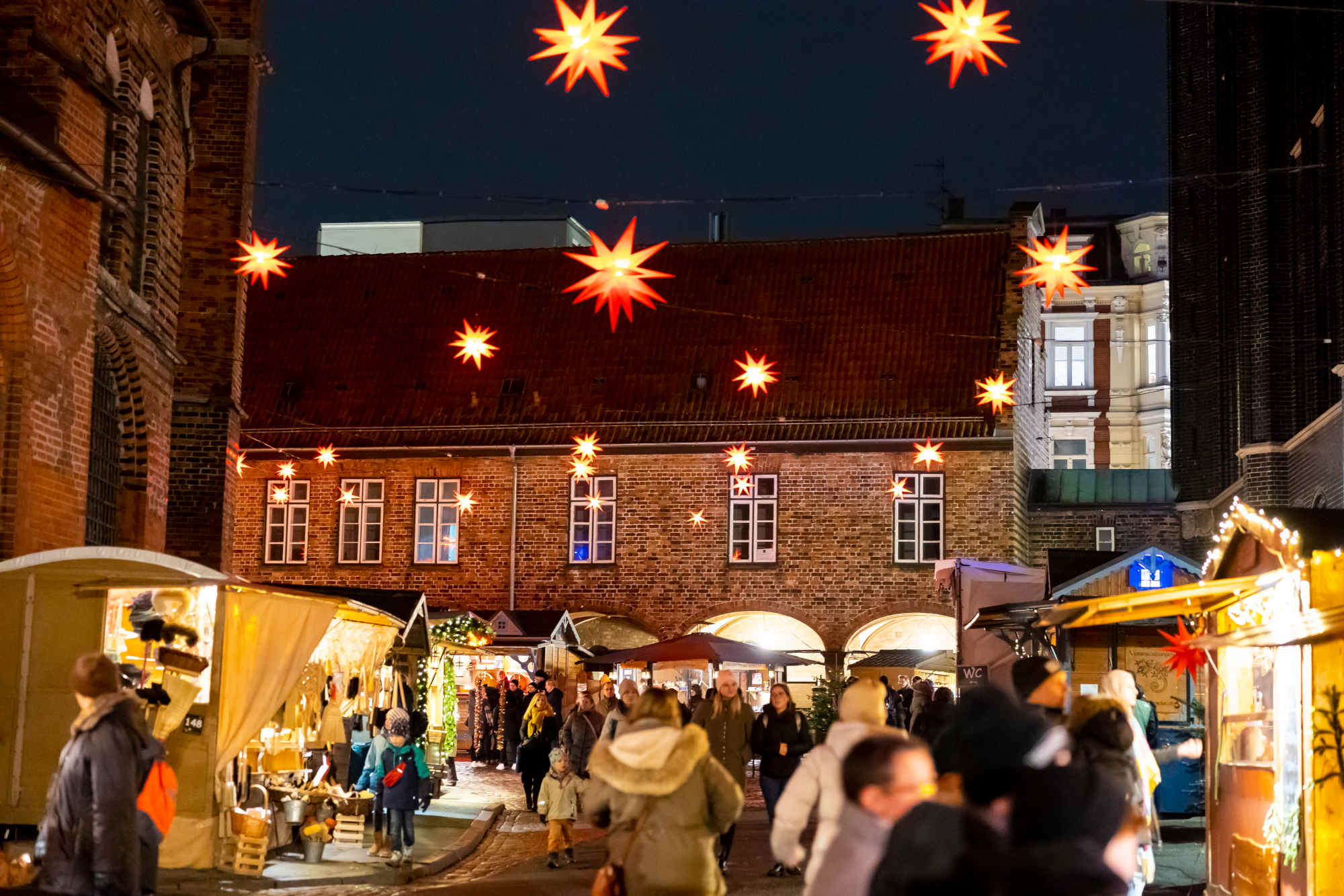 Hier tummeln sich allerlei Handwerker:innen, die lange vergessene Fertigkeiten zeigen und ihre Waren feilbieten. Immer wieder sorgen eindrucksvolle Walk-acts in historischen Gewändern für zünftige Unterhaltung. In den Abendstunden wird es besonders kuschelig: Kerzen und unzählige rote Weihnachtssterne tauchen den Platz in ein zauberhaftes Licht. Mit Musik und einem Becher Met wird es dann so richtig gemütlich.