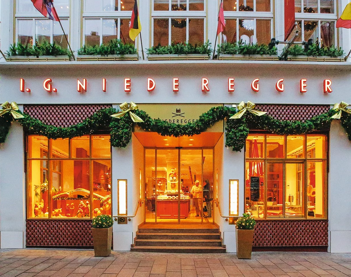 Lass dich vom leckeren Duft nach ofenfrischen Mandelbrötchen und Marzipan-Bratäpfeln ins Café Niederegger in der Breiten Straße locken.